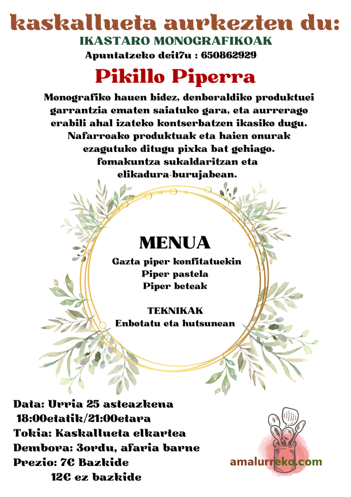.Sasoiko produktuak prestatu, 3 errezeta ikasi eta produktu horiek kontserbatu, ondoren erabiltzeko. Ikas dezagun sasoiko elikagaiak probesten.